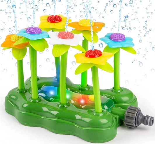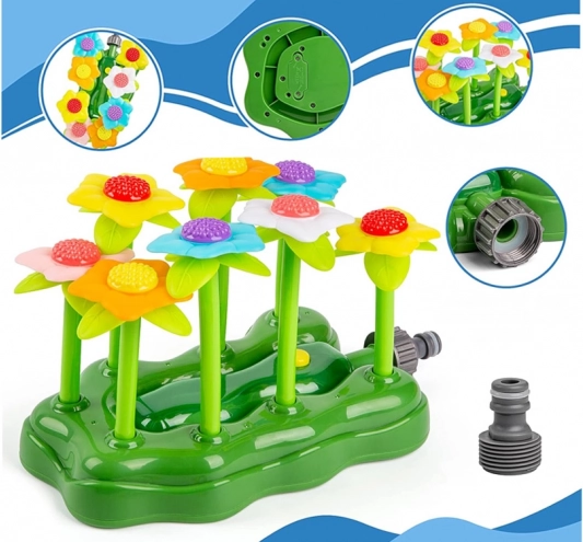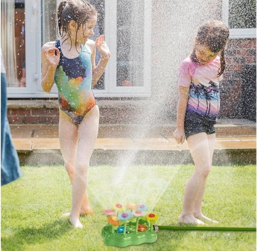 Kolorowe kwiaty falują pod naporem wody i rozpryskują ją na wszystkie strony – idealne do letnich harców na trawniku.