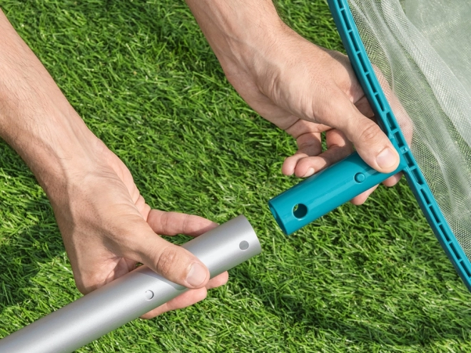 Siatkę można szybko zamocować do standardowych teleskopowych tyczek o średnicy 30 mm, co zapewnia wygodny zasięg na całej powierzchni basenu.