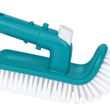 Dzięki solidnej konstrukcji i odpornemu włosiu poradzi sobie z glonami, nalotami oraz codziennymi zabrudzeniami. Za pomocą zatrzaskowych uchwytów łatwo podłączysz ją do teleskopowych kijów o wewnętrznej średnicy 30 mm, dzięki czemu wyczyścisz także głębsze partie basenu bez potrzeby nurkowania.