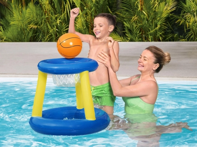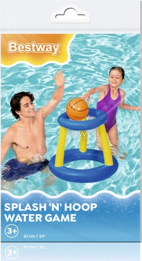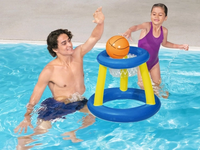 Niebiesko‑żółty nadmuchiwany zestaw do koszykówki to propozycja firmy Bestway na aktywne spędzanie czasu podczas kąpieli w basenie. Z pewnością spodoba się dzieciom, które lubią być w ruchu. Zabawa w wodzie w gorący letni dzień będzie na pewno świetna i dostarczy mnóstwo radości. Wystarczy napompować wszystkie elementy i zabawa gotowa! Kosz pływający na powierzchni wody z pewnością ułatwi trafianie do celu, dzięki czemu gra będzie jeszcze fajniejsza, a dzieci będą mogły pozytywnie spożytkować nadmiar energii.