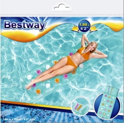 Ten plażowy materac BESTWAY jest idealny do relaksu w basenie, nad jeziorem i nad morzem. Duża powierzchnia 188 × 71 cm wygodnie pomieści osobę dorosłą, a wbudowana poduszka zapewni przyjemne podparcie głowy.