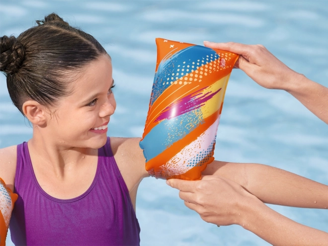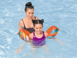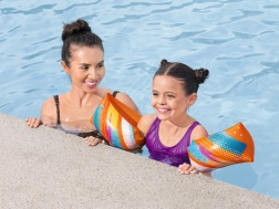 Kolorowe nadmuchiwane rękawki BESTWAY L/XL z motywem motyli dla dzieci od 5 do 12 lat zapewniają bezpieczne wsparcie podczas nauki pływania. Dzięki 2 niezależnym komorom powietrznym oraz wytrzymałemu materiałowi TPU są lekkie, wygodne i dobrze widoczne dzięki intensywnie pomarańczowemu kolorowi.