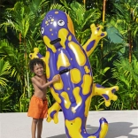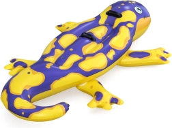 Dmuchany jeździecki pływak w kształcie kolorowej salamandry jest idealny do basenu, nad jezioro i nad morze. Dzięki wyrazistym barwom jest świetnie widoczny, a dzieci od razu go pokochają. Dwa zintegrowane uchwyty ułatwiają wsiadanie, trzymanie podczas zabawy i przenoszenie.