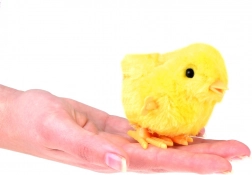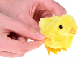 Kurczątko pokryte jest miękkim syntetycznym futerkiem, które imituje naturalne pióra.