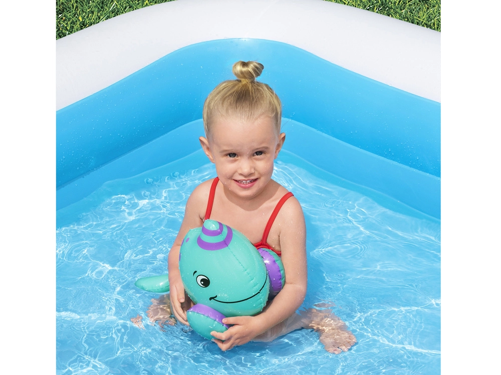 Dzięki żywym kolorom nieodparcie przyciąga wzrok dzieci, stając się centrum ich uwagi. To perfekcyjny sposób, aby dzieci mogły zapoznać się z wodnymi stworzeniami i cieszyć się kąpielą lub czasem spędzonym przy basenie.