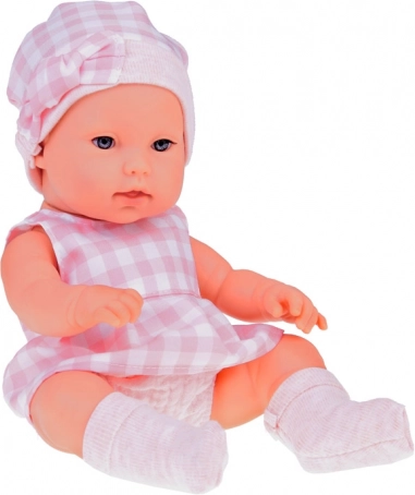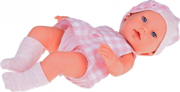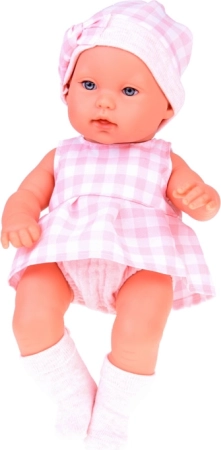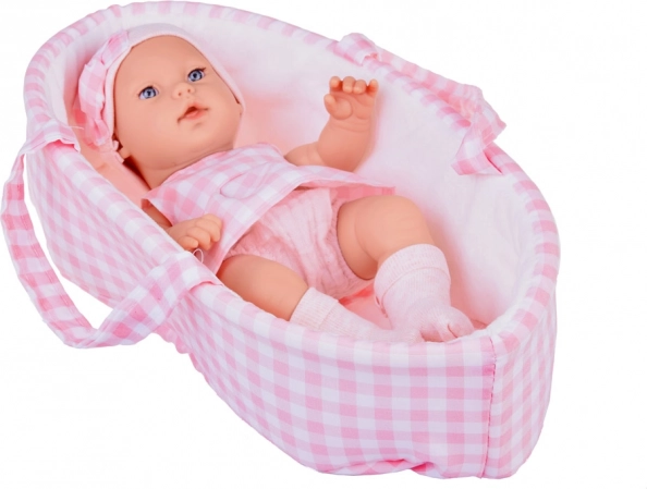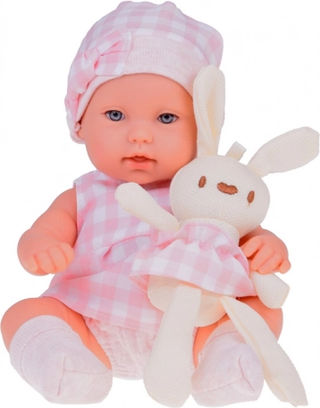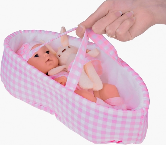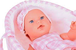 Ta realistyczna lalka noworodek to wspaniała towarzyszka dla małych opiekunek. Ubrana jest w delikatny, różowy kraciasty komplet z czapeczką i skarpetkami. Zestaw jest kolorystycznie spójny – pluszowy króliczek i miękki koszyk współgrają ze strojem lalki, dzięki czemu stanowi piękny i kompletny prezent.