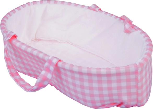Lekki, tekstylny koszyk z uchwytami jest kolorystycznie dopasowany do ubranka lalki i ułatwia przenoszenie oraz przechowywanie zabawki.
