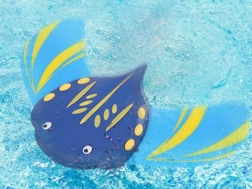 Ta kolorowa wodna zabawka w kształcie płaszczki dostarcza nieskończonej zabawy nad wodą. Dzięki opływowemu, hydrodynamicznemu kształtowi i lekkiej piankowej konstrukcji płynnie sunie po powierzchni i pod wodą, a nie wymaga żadnych baterii – napędza ją sama woda.