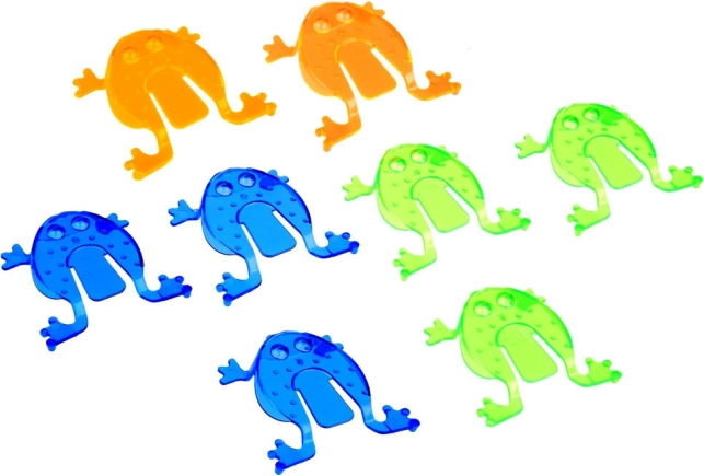 Kolorowe plastikowe żabki łatwo wystrzelisz palcem i poślesz prosto do miski. Idealne do szybkich rozgrywek i treningu zręczności.