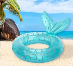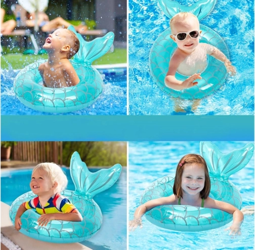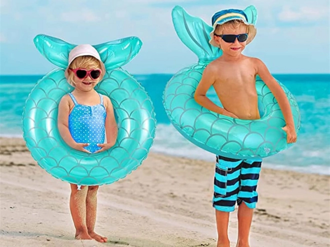 Urocze dziecięce koło do pływania z motywem syreny zapewnia bezpieczną zabawę w wodzie i wspiera naukę pływania. Dzięki wyrazistej płetwie i stabilności antypoślizgowej na wodzie dzieci spędzą godziny na zabawie w basenie, nad morzem i jeziorem. Wytrzymały plastik z nadrukiem łusek w turkusowo-niebieskim kolorze przyciąga wzrok od pierwszego spojrzenia.