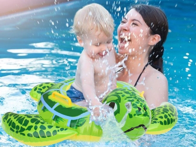 Urocze dmuchane koło do pływania w kształcie żółwia o długości 90 cm jest idealne do oswajania z wodą i nauki pływania.
