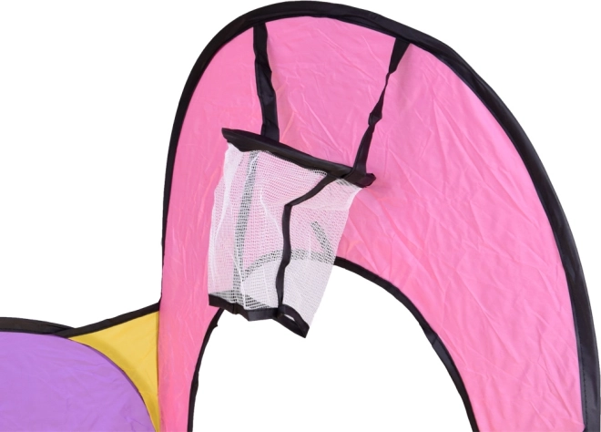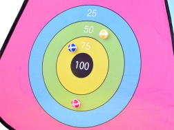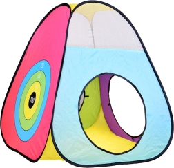 Trójkątny namiot z kolorową tarczą i otworami do celowania rozwija precyzję i motorykę. Świetna, rywalizacyjna zabawa dla małych strzelców.