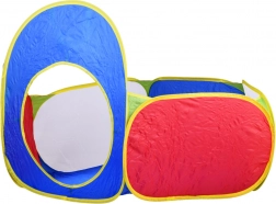 Ten elastyczny zestaw namiotów z tunelami zapewnia dzieciom bezpieczną przestrzeń do czołgania się, chowania i aktywnej zabawy. Namiot trójkątny ma tarczę do rzucania z 4 piłeczkami na rzep, kwadratowy namiot umożliwia łączenie tuneli, a kosz na piłeczki w baseniku wspiera celność i koordynację. Dzięki panelom z siatki wewnątrz jest przewiewnie, a rodzice mają dobrą widoczność.