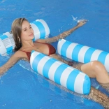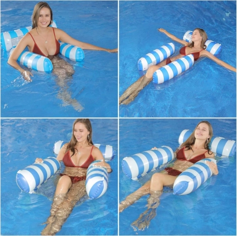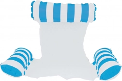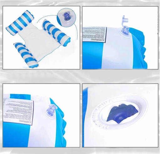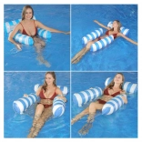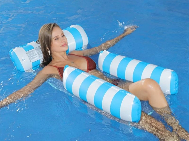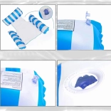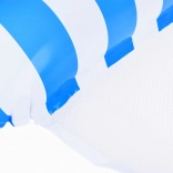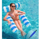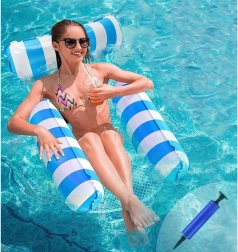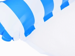 Pożegnaj się ze zwykłym pływającym materacem i powitaj wyjątkowe rozwiązanie - leżak w stylu hamaku, idealny na gorące letnie dni. Zaprojektowany tak, aby umożliwić częściowe zanurzenie w wodzie, dzięki czemu podczas opalania zawsze będzie Ci przyjemnie chłodno. Leżak jest wyposażony w dmuchane części wykonane z wytrzymałego PVC i połączone nylonową siateczką dla maksymalnego komfortu. Jego elegancki niebiesko-biały design stanie się ozdobą twoich wakacyjnych zdjęć.