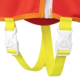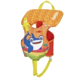- Bezpieczne zapięcie: Kamizelka jest wyposażona w zaawansowany zagłówek Heads-Up, który utrzymuje głowę dziecka nad wodą, oraz boczny zamek błyskawiczny z podwójnymi nogawkami dla stabilnego i bezpiecznego zapięcia. Uchwyt ratunkowy pozwala na łatwe podniesienie dziecka, gdy jest to potrzebne.