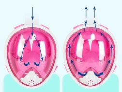 Oddzielne kanały do wdychania i wydychania z technologią Dry Top zapewniają, że woda nie przedostaje się do maski.