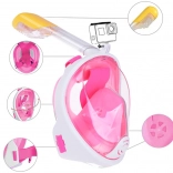 Odkrywaj piękno podwodnego świata bez wysiłku dzięki pełnotwarzowej masce do nurkowania. Ta innowacyjna maska oferuje szerokie pole widzenia 180° i łatwe oddychanie dzięki oddzielnym kanałom dla wdechu i wydechu.