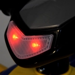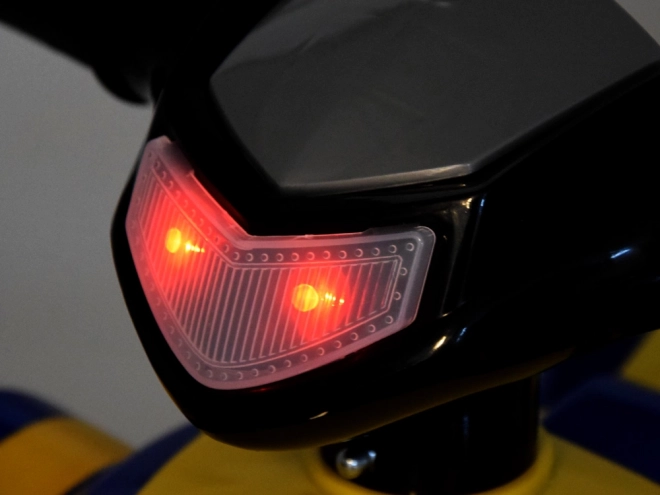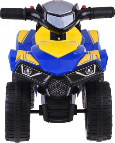 Jeździk w stylu małego ATV jest wyposażony w klakson i dźwięki uruchamiania silnika, co dodaje realistyczne wrażenie z jazdy.