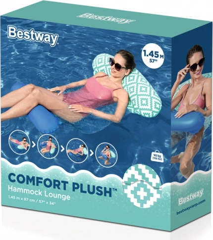 Bestway Comfort Plush to stylowy i wygodny pływający hamak, łączący aksamitnie miękką powierzchnię z przewiewną siateczką. Powierzchnia do leżenia CoolDown utrzymuje Twoje ciało tuż pod taflą wody, dzięki czemu nawet w upał pozostajesz przyjemnie odświeżony. Po kontakcie z wodą kolory wzoru stają się jeszcze bardziej wyraziste.