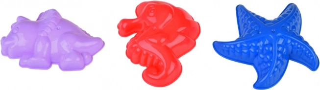 Foremki w kształcie dinozaura, konika morskiego i rozgwiazdy uatrakcyjnią każdą piaskową budowlę i pobudzą dziecięcą wyobraźnię.