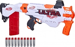 NERF Ultra Focus zapewnia dynamiczne strzelanie i płynną akcję dzięki napędowi elektrycznemu. Wystarczy nacisnąć przycisk akceleracji, wycelować za pomocą zintegrowanego celownika i naciskać spust – strzałki wylatują jedna po drugiej. Magazynek na 10 nabojów gwarantuje dłuższą zabawę bez przerw.