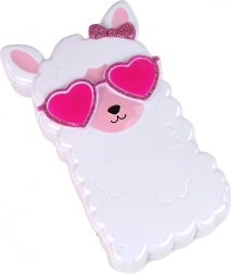 Urocza paletka kosmetyczna w kształcie różowej lamy zachwyci każdą małą elegantkę. Zawiera 4 odcienie błyszczyków do ust, 4 cienie do powiek, róż do policzków oraz pędzelek. Produkty są bez parabenów, łatwo się zmywają ciepłą wodą i mydłem i są idealne na pierwsze eksperymenty z makijażem. Kompaktowe wymiary sprawiają, że paletka mieści się w małej torebce lub plecaczku.