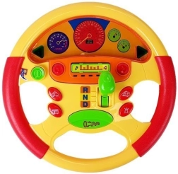 Ta wspaniała interaktywna zabawka będzie idealnym kompanem dla Twojego dziecka podczas codziennej zabawy i rozwoju. Twoje dziecko rozwija zręczność i koordynację ruchową, naciskając, chwytając i obracając elementy kierownicy. Kolorowe przyciski uruchamiają wesołe melodie i dźwięki, co wspiera kreatywność i ciekawość dzieci. Światełka LED przyciągają uwagę i pozwalają dzieciom poczuć się jak prawdziwi kierowcy.