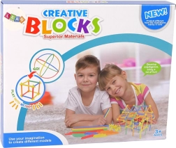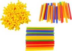 Zestaw konstrukcyjny z patyczków i słomek pozwala na tworzenie różnych budowli i konstrukcji przestrzennych. W zestawie znajdują się plastikowe słomki i łączniki zaprojektowane tak, aby były odpowiednie dla wszystkich użytkowników.