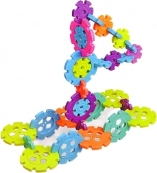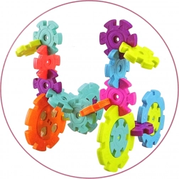 Zawiera 120 elementów w różnych kolorach i rozmiarach, które pozwalają budować rozmaite konstrukcje.