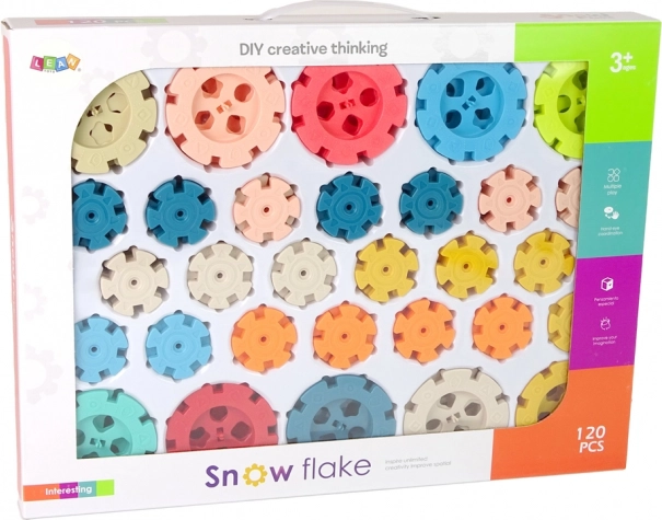 Cały zestaw zawiera 120 śnieżynek w różnych kolorach i rozmiarach, które umożliwiają budowanie różnorodnych konstrukcji i projektów. Przykłady budowli, które można stworzyć, znajdziesz w dołączonej ulotce.