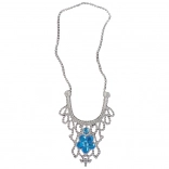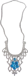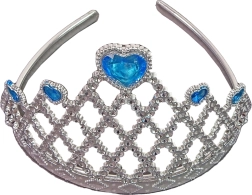 Piękna korona z niebieskimi sercowymi ozdobami, udekorowana misterną ażurową pracą. Odpowiednia do kostiumowych zabaw.