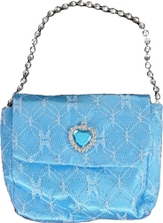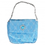 Stylowa niebieska torebka z eleganckim srebrnym wzorem i sercową ozdobą. Doskonała zarówno na nieformalne, jak i formalne okazje.