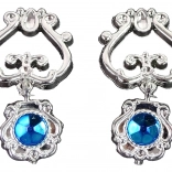 Para wspaniałych, vintage’owych kolczyków z niebieskim kamieniem i posrebrzanym metalem. Dodają elegancji i luksusu każdej stylizacji.