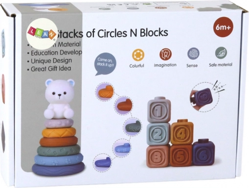 Zestaw edukacyjny jest idealny dla najmłodszych dzieci, łącząc naukę i zabawę w jednym. Dzięki różnorodności elementów, takich jak piramida z misiem i edukacyjne miękkie klocki, dziecko rozwija swoje umiejętności w naturalny i przyjemny sposób.