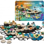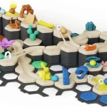 Zestaw Zestaw startowy Planeta oferuje budowę torów prowadzących przez cztery światy: dżunglę, ocean, pustynię i mroźną krainę. Bogate elementy dekoracyjne i figurki zwierząt dostarczają więcej zabawy i wspaniałych scenariuszy. Zestaw zawiera 200 zróżnicowanych elementów, w tym płyty bazowe, tory, zakręty, płyty wysokościowe, elementy dekoracyjne, zwierzątka oraz kulki. Dzięki młynkowi i huśtawce Twoja kulka dotrze jeszcze szybciej i dalej!