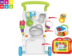 Interaktywny chodzik i centrum zabawy 2w1 marki MaaMaa wspiera pierwsze kroki oraz wszechstronny rozwój dziecka. Dzięki szerokiej, stabilnej podstawie, kółkom z powłoką antypoślizgową oraz bogatym aktywnościom – od nauki kolorów, kształtów i liczb po rysowanie, grę na pianinku i telefon – Twoje dziecko będzie się świetnie bawić, rozwijać motorykę, wyobraźnię i zmysły.