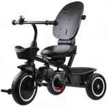 Rodzice docenią regulowaną prowadnicę z wygodnym uchwytem, podwójne hamulce postojowe na tylnych kołach oraz praktyczne miejsca na akcesoria: przedni koszyczek, duży tylny kosz i małą torebkę na drobiazgi. Koła z pianki EVA nie wymagają pompowania i zapewniają cichą, stabilną jazdę. Składane podnóżki oraz pedały w przednim kole ułatwiają zmianę trybów, dzięki czemu trójkołowiec płynnie rośnie wraz z dzieckiem.