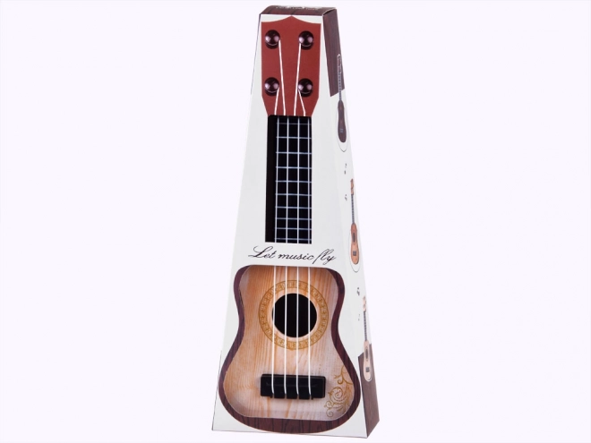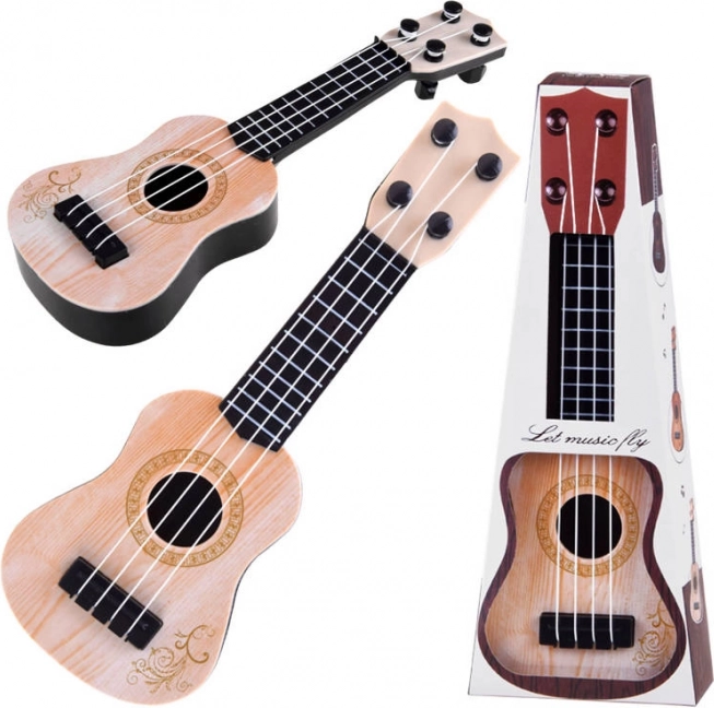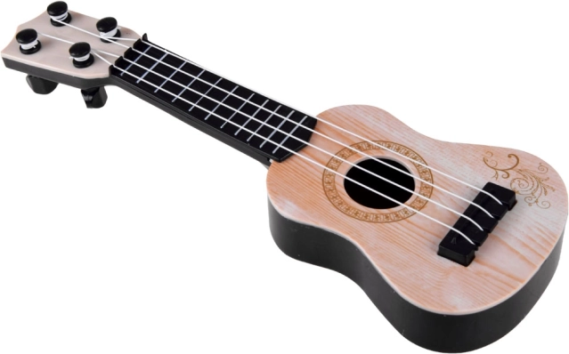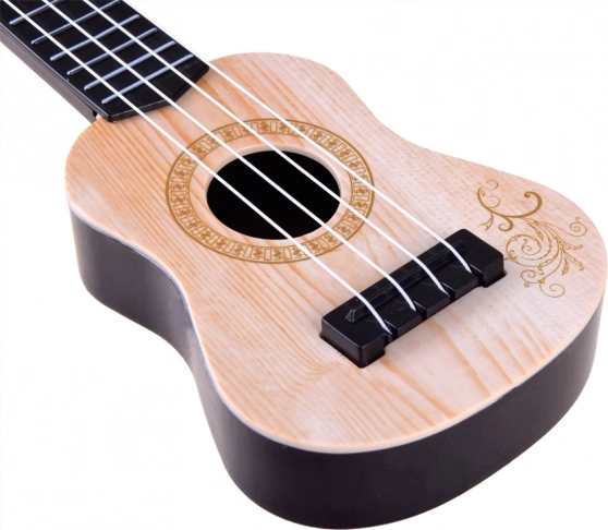 To mini ukulele zaprojektowano dla małych muzyków, którzy chcą odkrywać świat dźwięków. Dzięki ultralekkiemu plastikowemu wykonaniu łatwo leży w dłoniach nawet najmłodszych, a dekor imitujący drewno nadaje zabawce wygląd prawdziwego instrumentu.