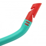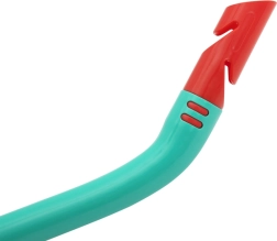 Fajka wyposażona jest w górną osłonę przeciwbryzgową oraz zawór ułatwiający wydmuchiwanie wody. Ergonomiczny, bezlateksowy silikonowy ustnik jest przyjemny w ustach, a dzięki klipsowi fajkę można łatwo przypiąć do maski.