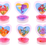 Sześć stempelków w kształcie serduszka w kompaktowym opakowaniu – idealne do domu, przedszkola i w podróży.