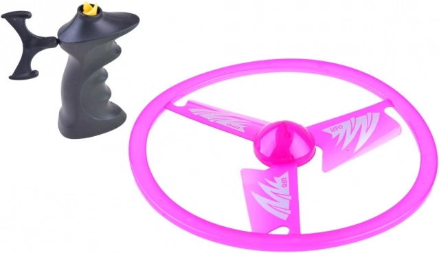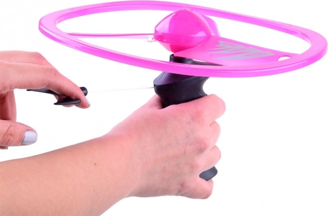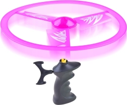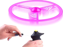 Obsługa jest prosta: nałóż dysk na uchwyt, pociągnij za sznureczek i patrz, jak różowe „UFO” unosi się w powietrzu. Świetny do rozwijania koordynacji, ruchu i wspólnej zabawy.