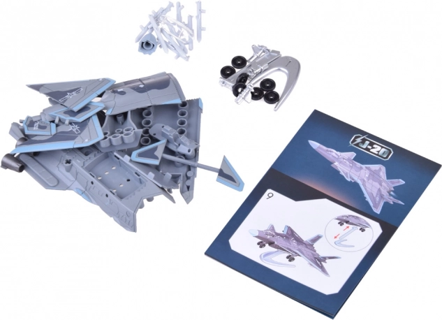 Zestaw zawiera elementy umożliwiające złożenie detalicznego modelu J-20 w autentycznych kolorach i kształtach.