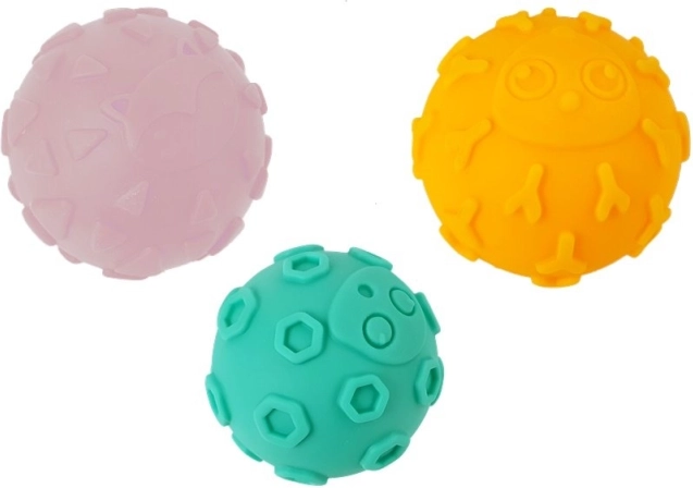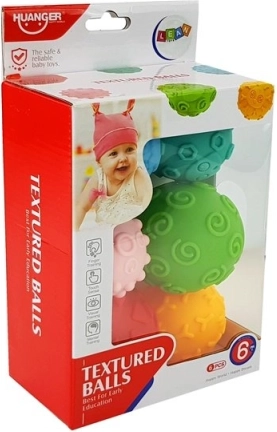 .Zestaw 6 różnych piłeczek różniących się fakturą, wielkością i wypustkami. Gdy Twoje dziecko bierze je do rączki, stymuluje zmysł dotyku i czucie głębokie. Dodatkową zaletą jest nauka poznawania różnych faktur i figur geometrycznych. A co z nimi zrobi, zależy tylko od jego wyobraźni. Będzie rozwijać koordynację ręka-oko, wzrok i precyzję, ponieważ na początku życia maluszka nie jest łatwo utrzymać piłkę w dłoni. Uśmiech na twarzy Twojego dziecka oraz korzyści płynące z tej prostej, ale edukacyjnej zabawki sprawią Ci radość z jego postępów.
