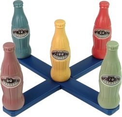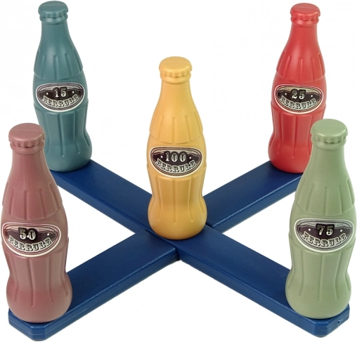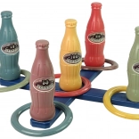 Ta klasyczna gra zręcznościowa w nowoczesnym wydaniu łączy proste zasady z dużą dawką zabawy. Celem jest rzucanie kółek tak, aby lądowały na kolorowych butelkach ustawionych na krzyżowej podstawie. Każda butelka ma przypisaną liczbę punktów, dzięki czemu łatwo zorganizujesz rywalizację dla dzieci i dorosłych.