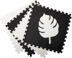 Mata MoMi FELI zawiera 16 elementów – 4 puzzle, 4 liście i 8 części brzegowych. Każdy puzzel ma wymiary 60x60 cm.