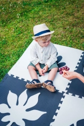 Duże przestrzenne liście, będące częścią puzzli, to świetna zabawka dla dziecka. Gdy maluch z maty wyrośnie, możesz użyć jej jako elementu dekoracyjnego, przyklejając dwustronną taśmą.