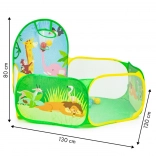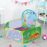 W zestawie znajduje się 50 plastikowych piłeczek (Ø 6 cm), które zamienią namiot w zabawny suchy basen. Wbudowany kosz do rzucania motywuje do ruchu, rozwija koordynację i celność. Wytrzymała podłoga jest przygotowana do zabawy w domu i na zewnątrz.