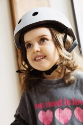 Praktyczny system zapięcia z regulacją 48–55 cm oraz regulowane paski podbródkowe pozwalają na precyzyjne dopasowanie wielkości. Kask idealny do jazdy na rowerze, hulajnodze, jeździku lub rolkach, a do tego spełnia normę EN-71.