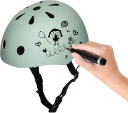 Kask można ozdabiać kredkami i flamastrami. Gdy motyw się znudzi, łatwo go zetrzesz i stworzysz nowy, oryginalny wygląd.