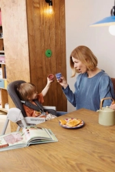 Krzesełko do karmienia MoMi GOJO jest wyposażone w 5‑punktowe pasy bezpieczeństwa, więc Twoje dziecko siedzi bezpiecznie, a Ty możesz spokojnie pomagać mu w rozszerzaniu jadłospisu.